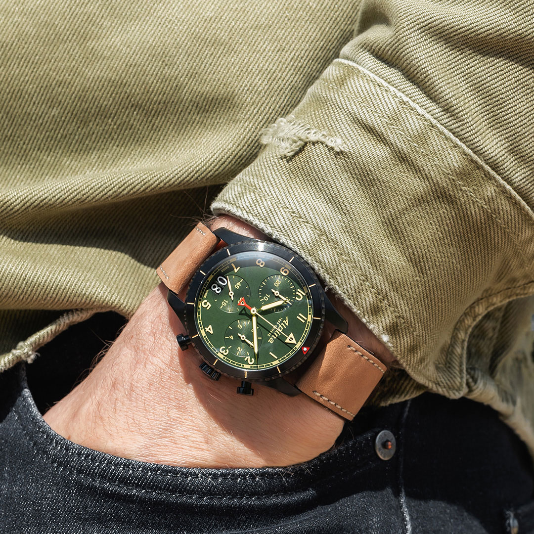 Alpina Startimer Pilot Leather Green Dial Watch AL-372GR4FBS26