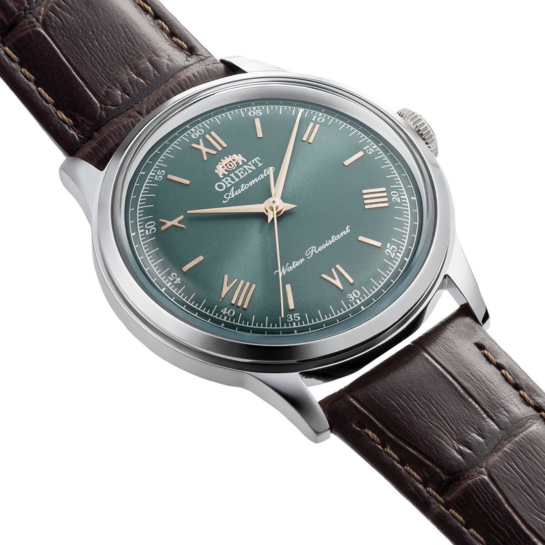 Green dial and brown leather strap